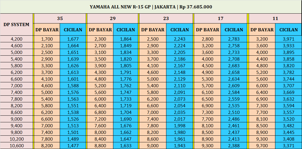 Lihat promo dan simulasi kredit di bulan Juni di kota Anda. Ajukan Kredit Motor Yamaha R15 Monster Secara Online disini. Daftar Produk Sepeda Motor Yamaha Indonesia Terbaru.