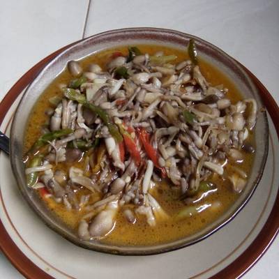 - 500gr jamur tiram - 1 buah jagung manis serut - 1 genggam daun kemangi - 8 buah cabai hijau potong-potong - Garam secukupnya - Gula secukupnya. Masukkan jamur ke telur dan gulingkan pada tepung. Bersihkan jamur tiram terlebih dahulu lalu potong memanjang.